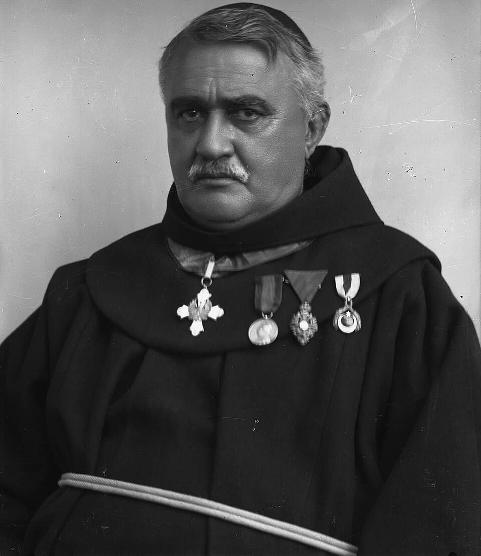 Broeder Gjergj Fishta op middelbare leeftijd. Net als alle Balkanmannen uit die tijd draagt hij een snor.