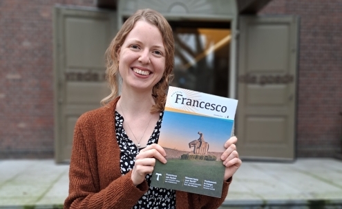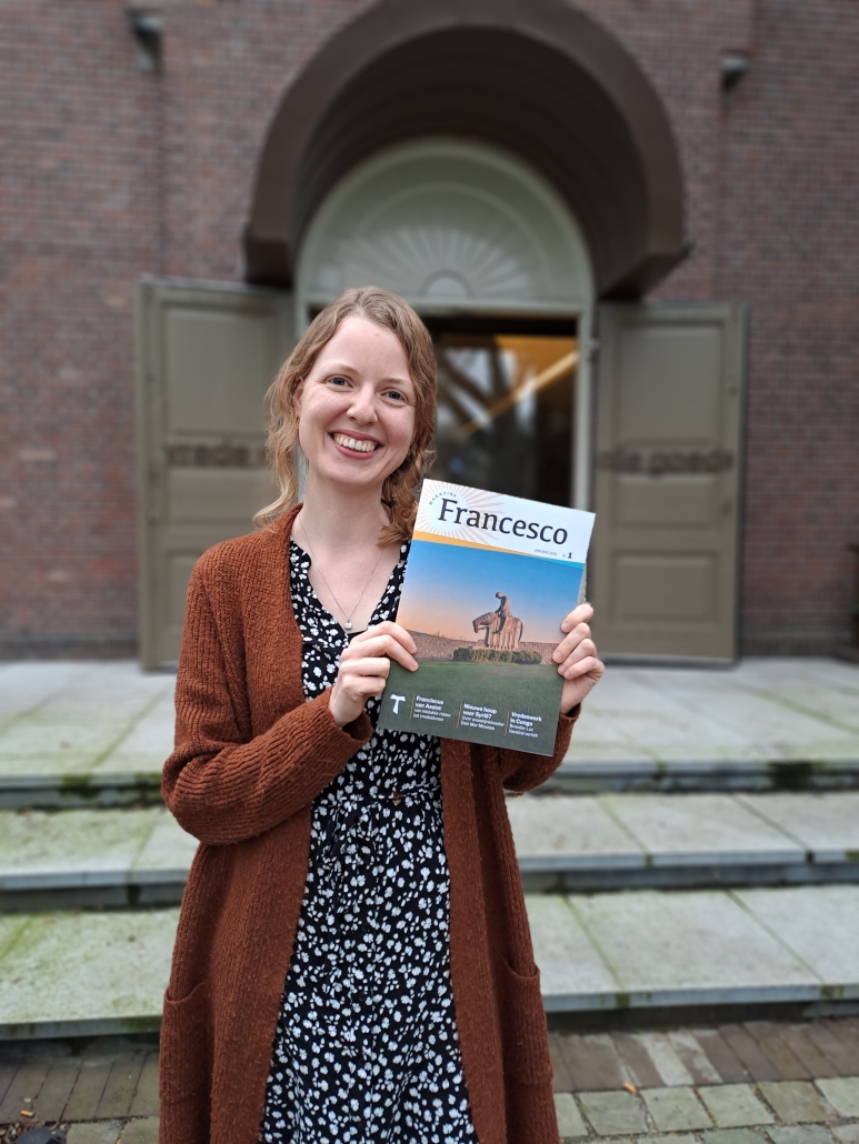 “Sinds ik bij de Franciscaanse Beweging werk, kom ik Franciscus overal tegen. Nu zou je kunnen zeggen dat dat onvermijdelijk samenhangt met mijn werk, maar met die ‘franciscaanse voelsprieten’ zie ik zijn aanwezigheid nu óók op meer onverwachte plekken, zoals verwijzingen in films of in kunst. En natuurlijk kom je zijn voorbeeld tegen in gesprekken over, bijvoorbeeld, duurzaamheid of interreligieuze dialoog. Als iemand 800 jaar na zijn dood zo breed aanwezig is, kun je wel zeggen dat diegene nog altijd springlevend is. Ik begrijp ook wel waarom: Franciscus is toegankelijk en praktisch ingesteld en raakt aan thema’s die ook nu heel actueel zijn: zorg voor de aarde, opkomen voor de kwetsbaren, vredevol en geduldig omgaan met andersdenkenden. Maar ook: niet altijd het nieuwste van het nieuwste moeten hebben, niet méér willen hebben of beter willen zijn dan een ander, maar dankbaarheid oefenen, genoegen nemen met genoeg en vrede vinden in jezelf.”